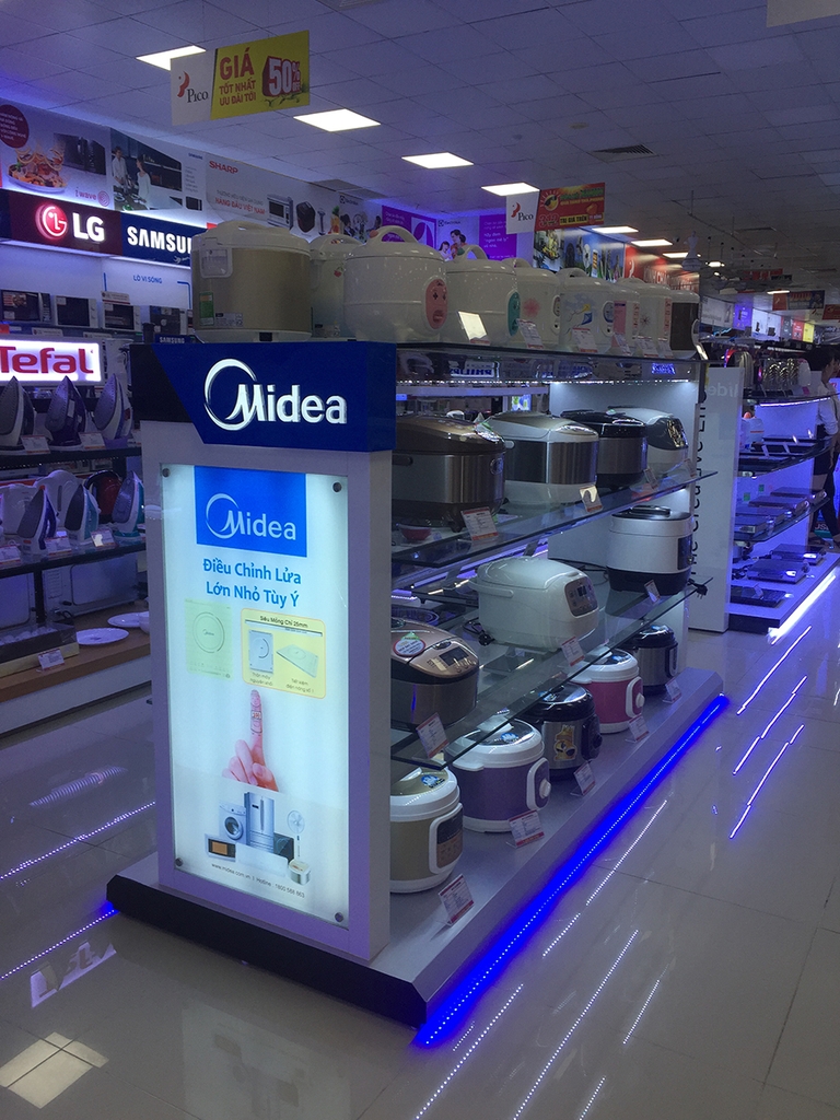 Thi công kệ trưng bày sản phẩm từ thương hiệu Hitachi tại các trung tâm thương mại, điện má, siêu thị... Đảm bảo chất lượng, thẩm mỹ và g...